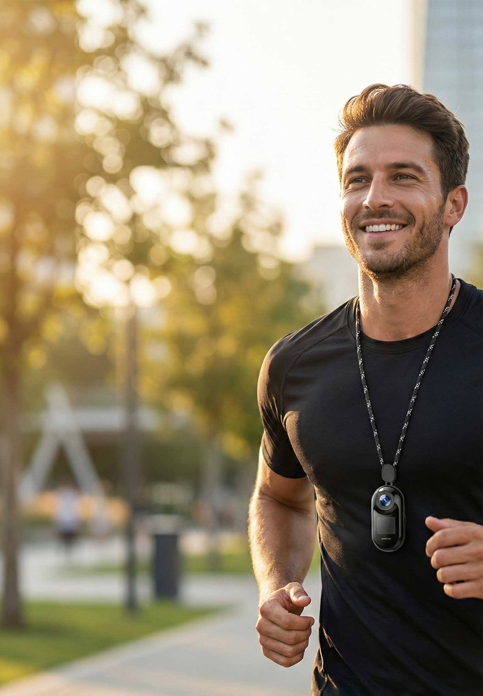 La caméra Visionix se porte autour du cou et capture votre vie en Full HD, que vous couriez, marchiez ou viviez simplement votre journée. Légère, discrète et prête en une seconde.